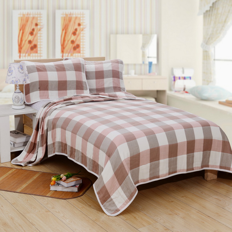 면 섬유 인쇄 그리드 타월 담요 부드럽고 편안하며 피부 친화적이며 촉감이 부드럽고 흡습성과 통기성이 좋으며 압력이없는 가볍고 가벼운 알몸 수면, 밀착 구름 수면.